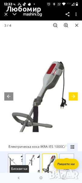 Електрическа коса IKRA IES 1000C/ 1000W - Градиснки тример с корда/нож 37 см 23 см