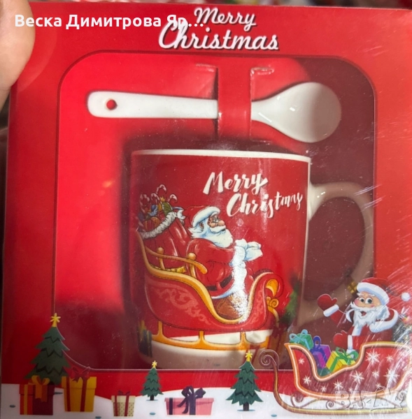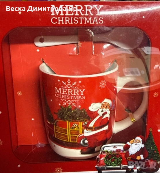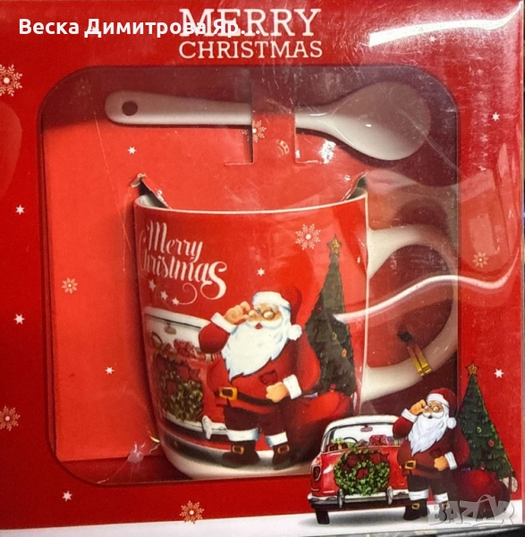 Размерите на чашата са 9.5 х 7 х 7.3 см, изработена от качествен порцелан. Чашата и лъжичката се предлагат в красива, цветна кутия, идеална за подарък или лична употреба през празничния сезон.