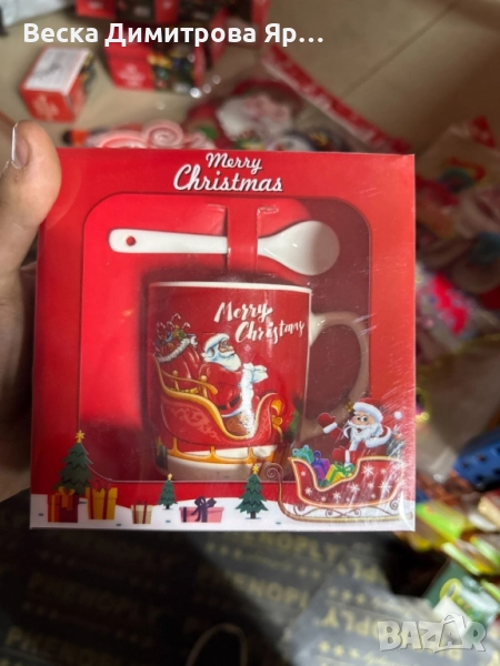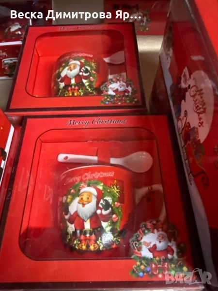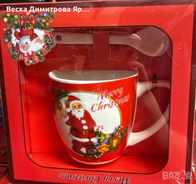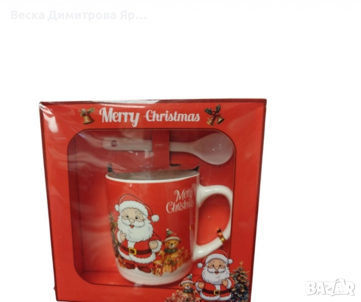 Коледна порцеланова чаша за чай или кафе с порцеланова лъжичка е перфектният избор за уютните празнични сутрини. Чашата е декорирана с апликация на Дядо Коледа, като има четири различни варианта на дизайна: