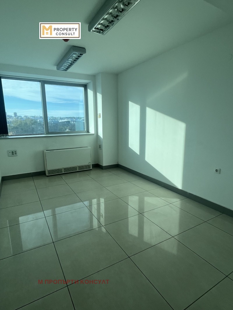 Отдава под наем офис в бизнес сграда с 24 часа достъп и охрана. Офиса е със собствен санитарен възел и не е обзаведен. Отопление с климатици.