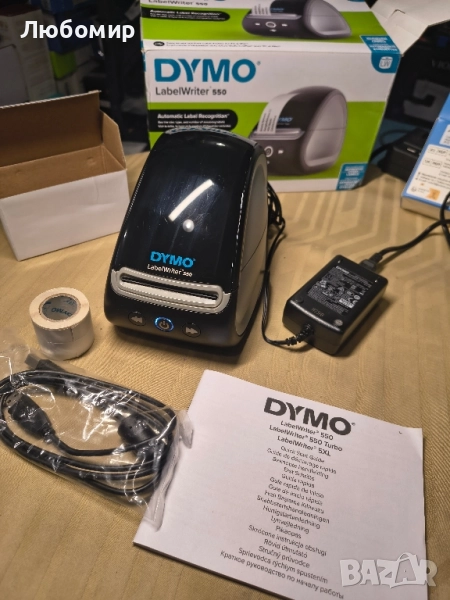 Скорост: 51 етикета в минута.Термодиректен принтер за етикети Dymo LabelWriter 550 с качествен отпечатък – 300 dpi печатаща глава. Не се нуждае от допълнителни ленти, мастила или тонер касети. Удобен за печат както на единични етикети, така и на големи серии. Много бързо и лесно се създава и отпечатва желания от вас етикет чрез DYMO Label software (безплатна програма, която е включена на диск в комплекта, а може да се изтегли и от тук). Може да се отпечатват баркод, снимки, лога, автоматично сменящи се дата, час, номер. Налични са много различни шрифтове, стилове и графики. Как се зарежда лентата с етикети в принтер Dymo LabelWriter