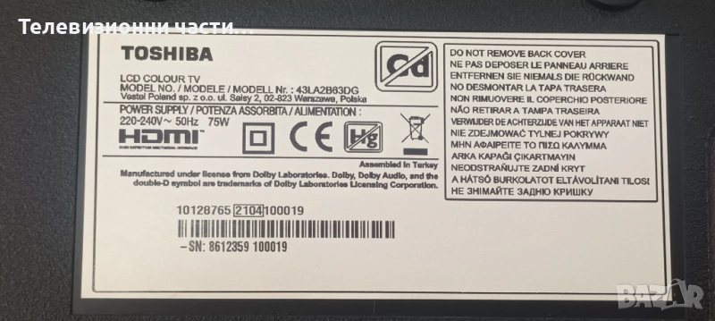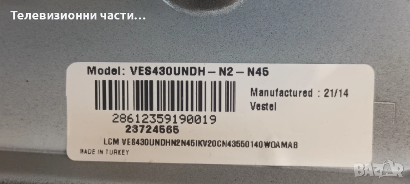 Toshiba 43LA2B63DG със счупен екран VES430UNDH-N2-N45 PT430CT03-14/PT430CT03-14-C-V1.0 N2THK430FHDCT
