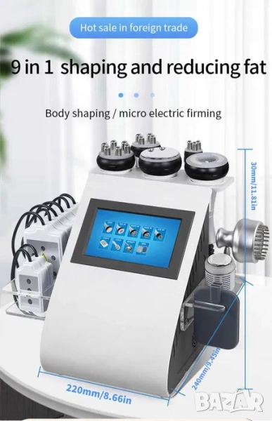 Професионален апарат за редуциране на мастните натрупвания, изглаждане на целулита, оформяне на силуета и лифтинг на лице и тяло.