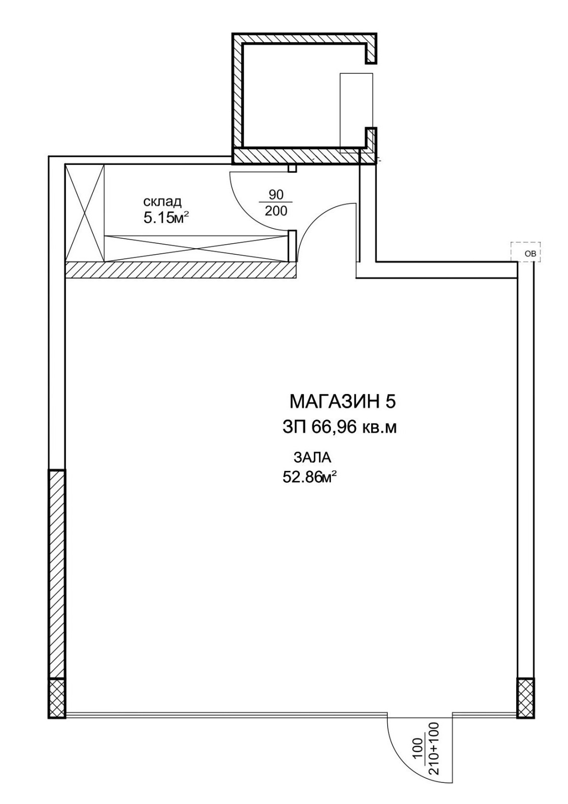 - Площ 85 кв.м, включваща търговска зала, склад, санитарен възел