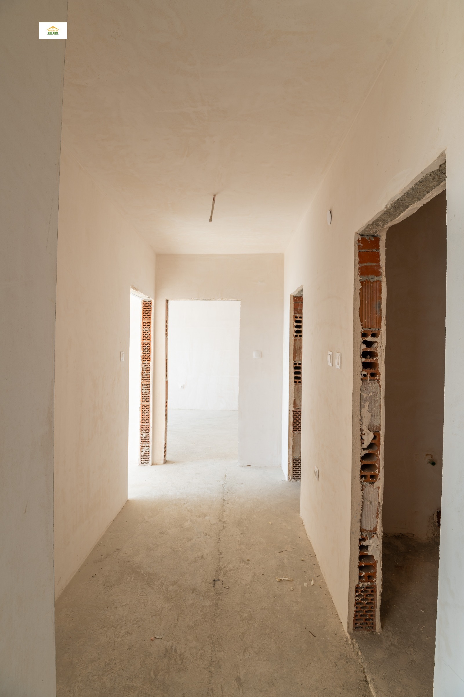 115 кв.м, разпределени в просторна дневна с кухненски бокс, две самостоятелни спални, две бани с тоалетна, дрешник, две малки тераси. Изложение: север-юг с откриващ се изгред към Старият град и Родопите. Издаваме на шпакловка и замазка.