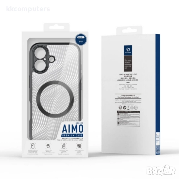 Оригинален калъф Dux Ducis Aimo с Magsafe е идеалният избор за тези, които ценят функционалността и стила. Калъфът разполага и с ринг, който служи като стойка за телефона. Комбинацията от твърда PC задна плоскост и мек TPU ръб ви позволява да поставите телефона си в калъфа без усилие, той може да осигури ефективна защита за вашия мобилен телефон. Този кристално прозрачен калъф с MagSafe поддържа безжично зареждане. Преливащите се линии на задната плоскост с матирано покритие изглеждат много модерно. Повдигнатите ръбове на екрана и камерата също предпазват тези уязвими елементи на телефона от надраскване и други повреди. Съвместим с моделите: iPhone 17