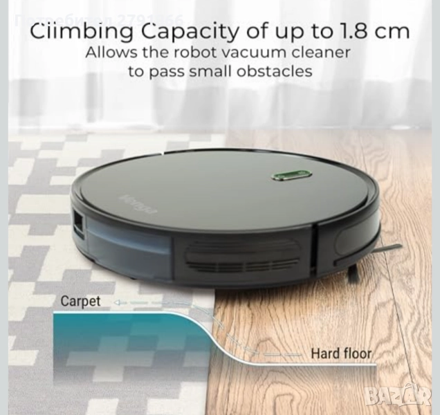 С капацитет на катерене от 1,8 см, може да се катери по постелките, за да ги отърве от прах и косми. Не се притеснявайте за неравни подове!