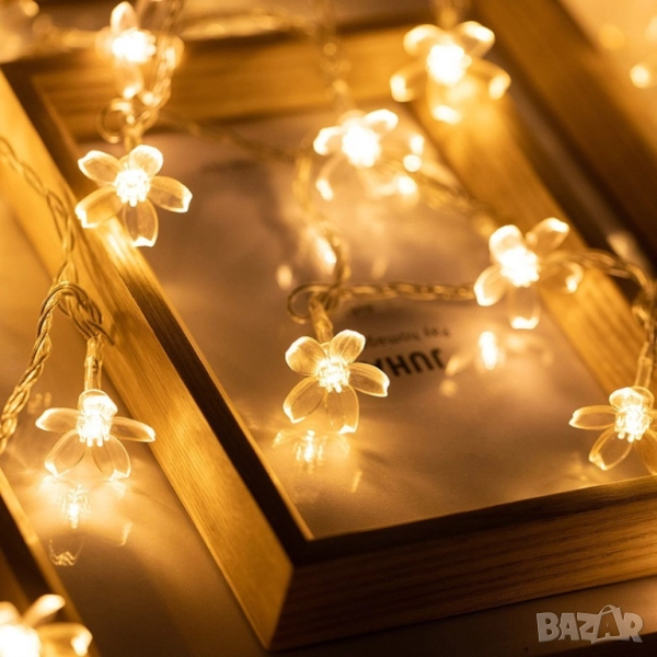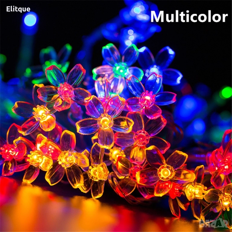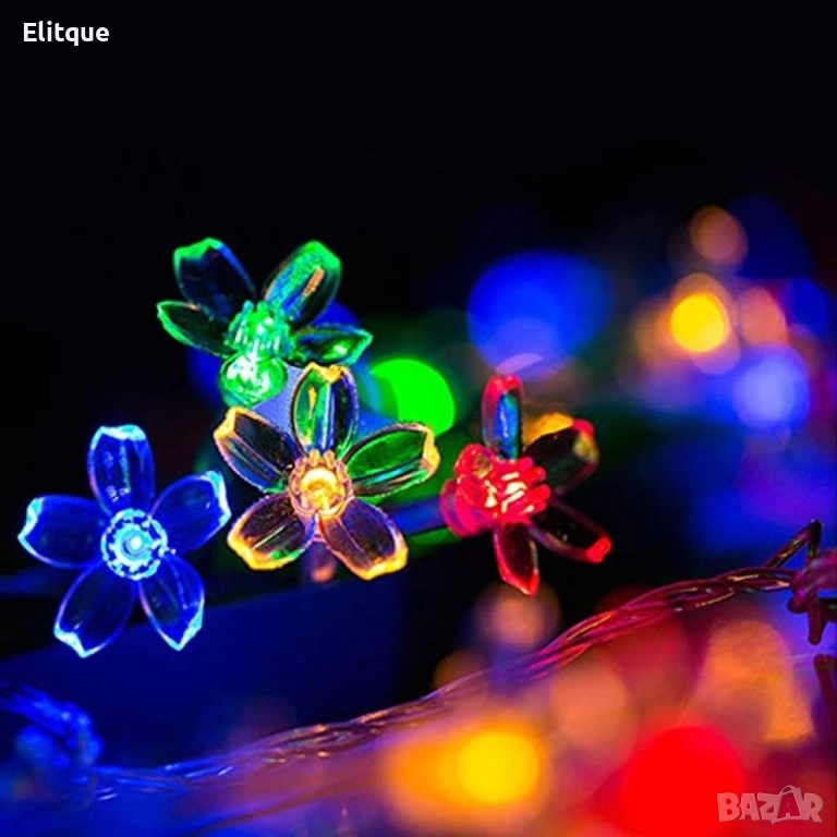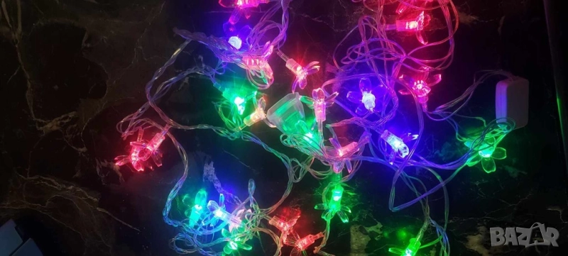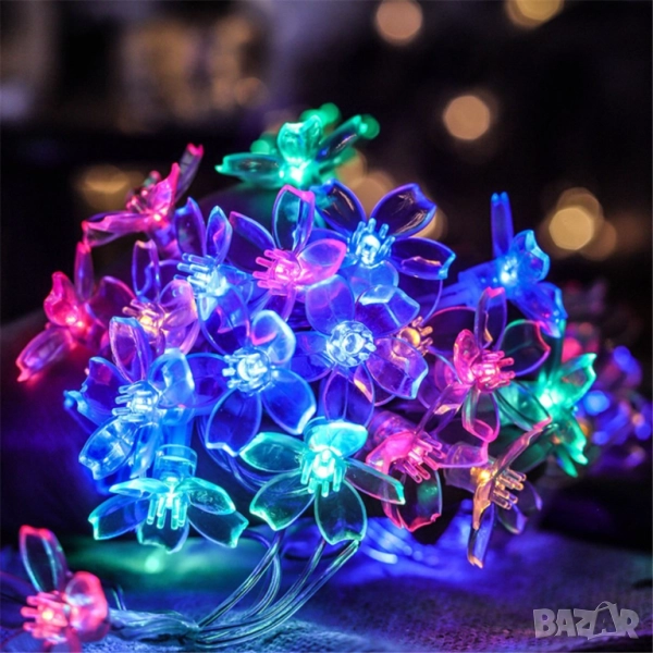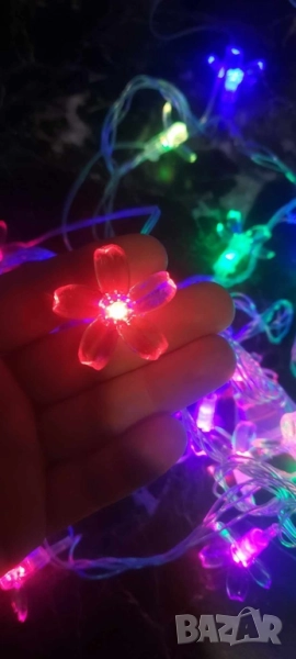 Многоцветни коледни LED лампички с цветя с щепсел - Многоцветни, дължина - 5м ,28бр лампички.С многоцветните цветя, нашите лампички съчетават вдъхновение с изтънченост и придават на вашето пространство неповторима атмосфера. Независимо дали ги използвате за украса на дома, терасата или Коледната елха, те ще направят мястото ви по-специално!