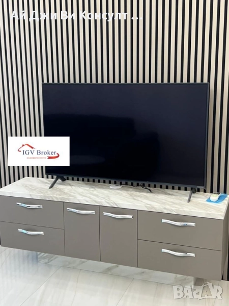Апартаментът е напълно обзаведен с чисто нови мебели и елитни електроуреди стилен, светъл и съвършено готов за живеене. Всеки детайл е подбран с вкус и прецизност, за да осигури уют и модерен стандарт на обитаване.
