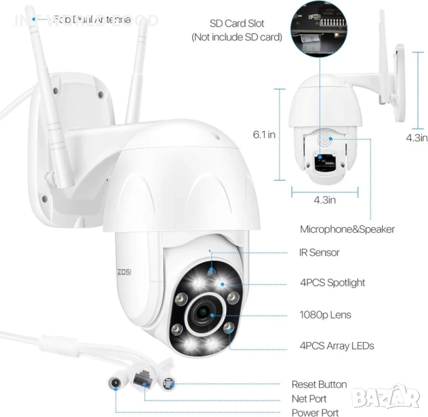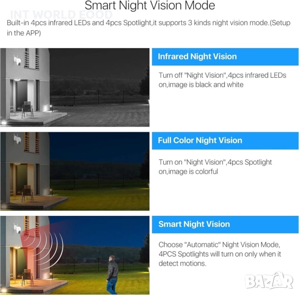 – Поддържа двупосочно аудио, различни режими на нощно виждане, проследяване на движение и незабавни известия.