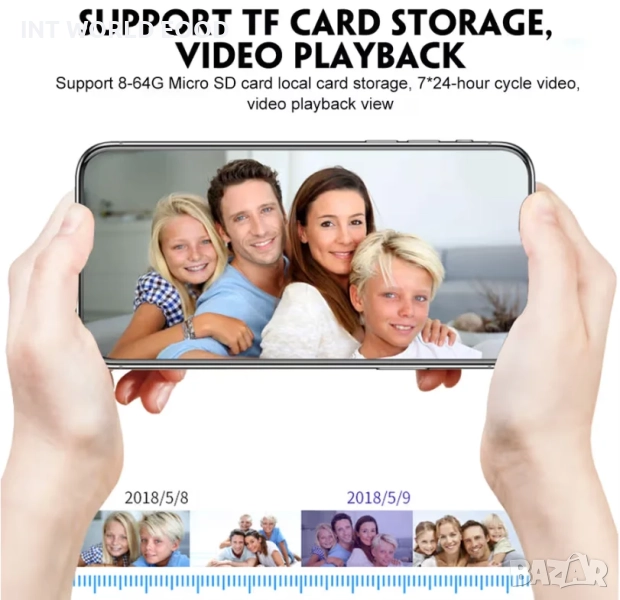 Съвместимост на TF карта: 8–64GB (до 25 дни запис)