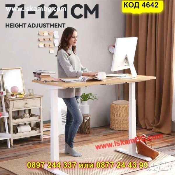 Повдигащо се бюро с два мотора, което ви помага да редувате седнало и изправено положение за повече енергия и по-малко болки в гърба. Плавно и тихо движение (<45 dB), запаметяване на 3 височини и стабилна конструкция с голяма товароносимост. Плот от естествено дърво 140x60 см в цвят венге – стил и издръжливост за всяко работно място.