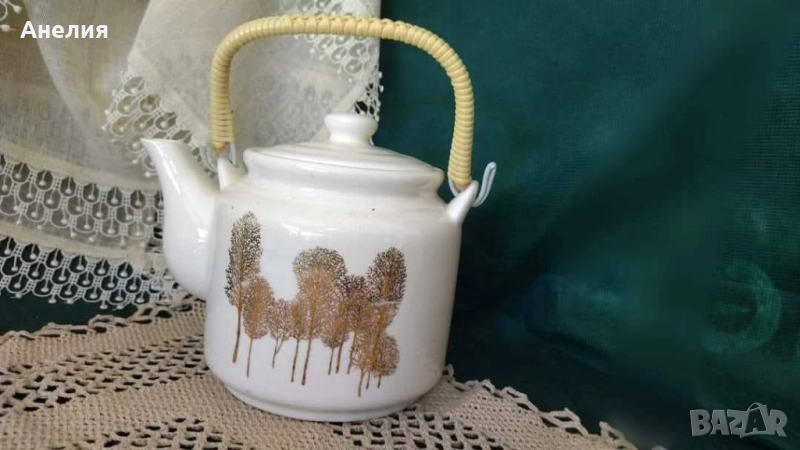 Чайник с плетена дръжка и златисти дървета → Обява 52063173