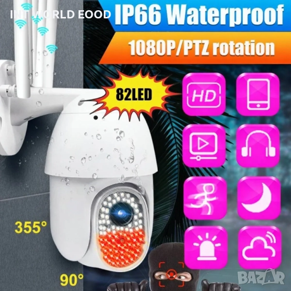 – Външната WiFi камера 82 LED 1080P 2MP предлага надеждно наблюдение с висока резолюция и интелигентни функции за сигурност.