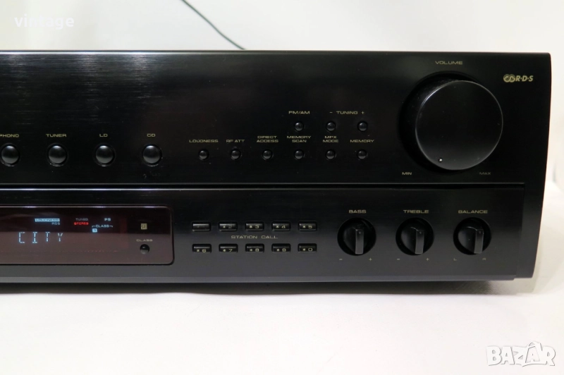 Транзисторен стерео ресийвър, отличен технически, много добър външен вид. Цифров тунер с RDS и памет, корекции: bass, treble, loudness. Дистанционно управление не е налично. Приложените снимки и видео са реални!