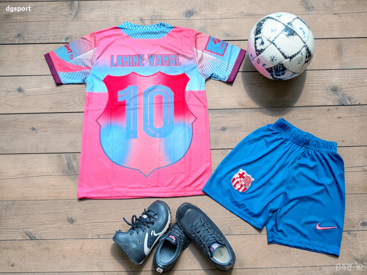 Детски футболен екип на Барселона – специално издание Labubu с името на Lamine Yamal и номер 10.Дизайн: розово-син градиент + Labubu фигура отпред.Уникален модел, подходящ за подарък или фен артикул на Барса!Налични размери 128,140,152,164 и 176.Доставка със Еконт или Спиди, опция преглед и тест.
