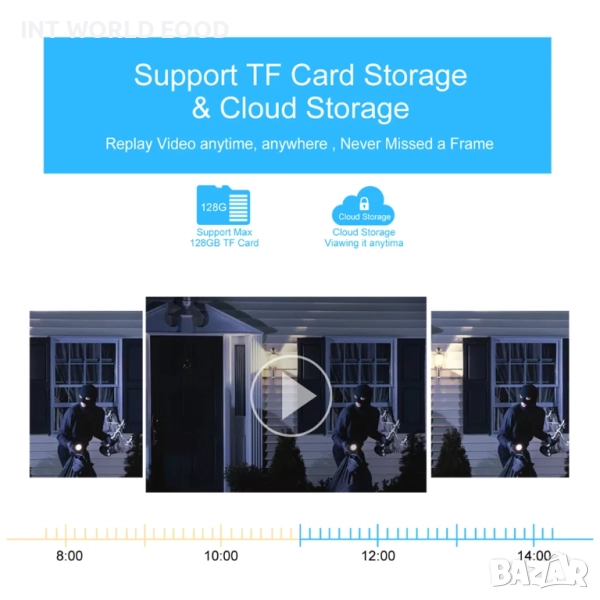 Съхранение: Поддръжка на TF карта (до 128ГБ) и облачно съхранение