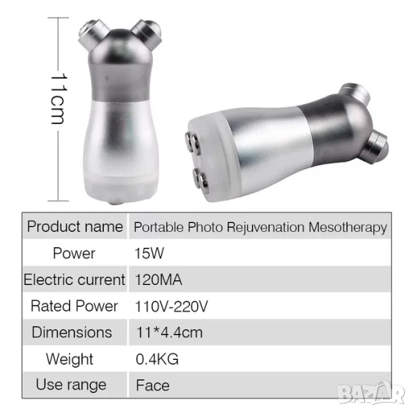 Този практичен и ефективен уред предоставя възможността за прилагане на една от най-търсените и популярни козметични процедури - мезотерапия. Допълнително предимство на настоящия уред е, че той позволява манипулацията да бъде прилагана безиглено. Това я прави безопасна и щадяща кожата, но в същото време не по-малко ефективна и високорезултатна, сравнено с класическите процедури като мезотерапия, електротерапия, йонофореза и ултразвук.