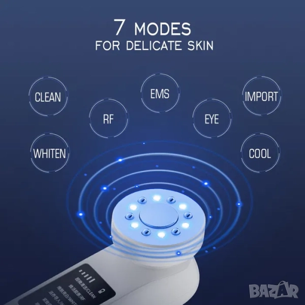 Уред за третиране на лице и подмладяване на кожата 7 в 1, Почистване на порите, Против бръчки, EMS лифтинг, Мезотерапия, LED светлина