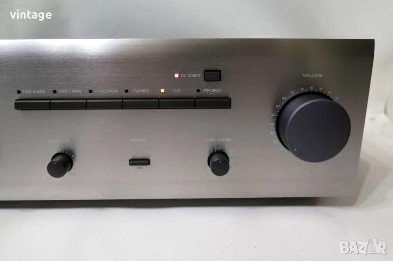 Транзисторен стерео усилвател, отличен технически, много добър външен вид. Корекции: bass ±10 dB at 20 Hz, treble ±10 dB at 20,000 Hz, variable loudness, CD direct. Възможност за избор на ММ/МС дози. Приложените снимки и видео са реални!