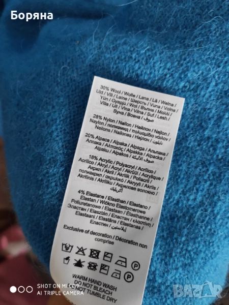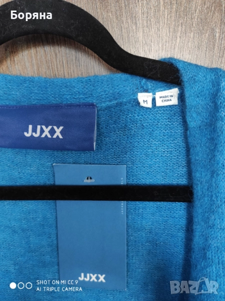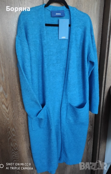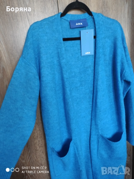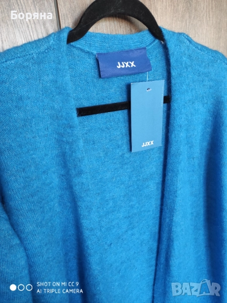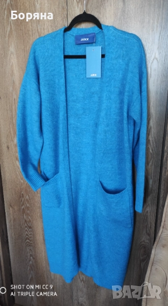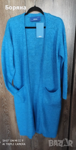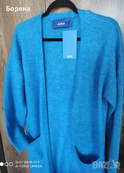 Нова с етикет дълга жилетка JJXX от вълна алпака, в страхотен син цвят. Размер М, цена по етикет 99 eur. Продавам я за 99 лв.