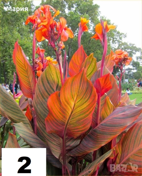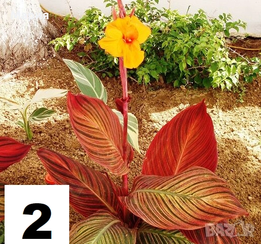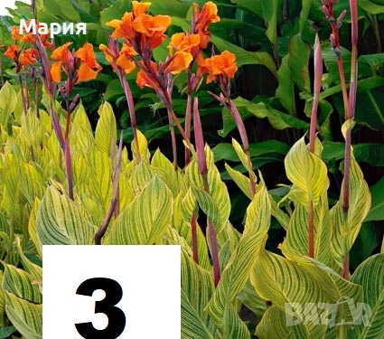Предлагам три сорта висока канна с шарени листа.Цената за брой корен / грудка/ е 4.Ограничени количества!