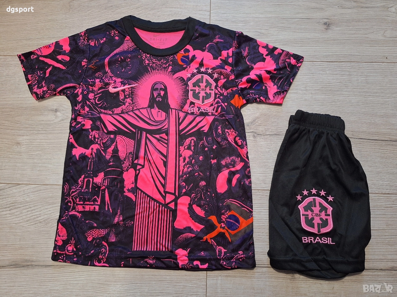 Детски флуоресцентен футболен екип на Неймар Бразилия !Специално издание Рио де Жанейро !Екипът е флуоресцентен под ултра виолетова светлина. Бродирани емблеми на клуба и марката.Име на футболист и номер принтирани директно върху плата.Налични размери 128,140,152,164 и 176.Доставка със Еконт или Спиди, опция преглед и тест.