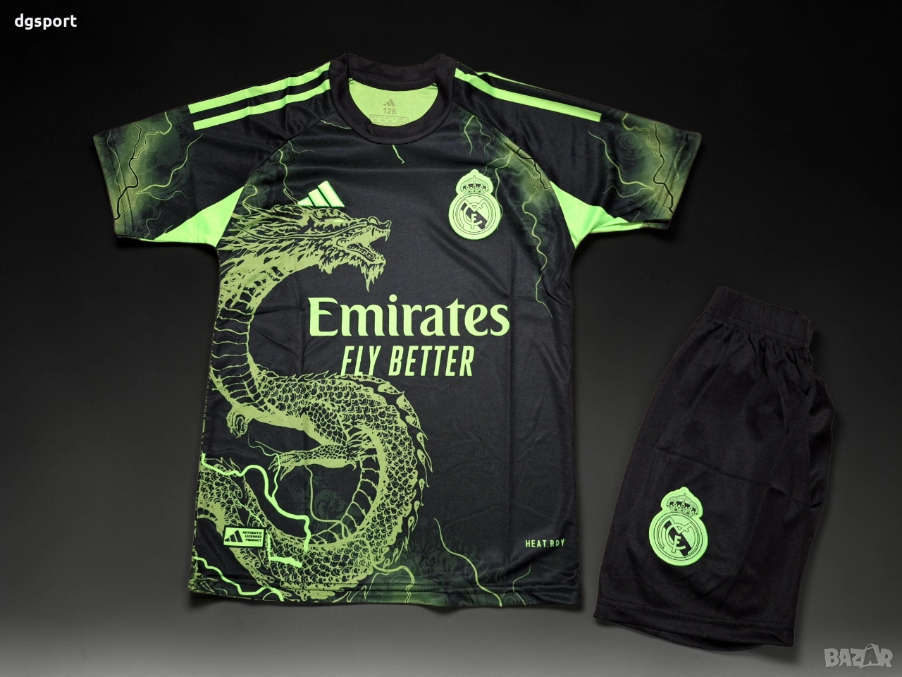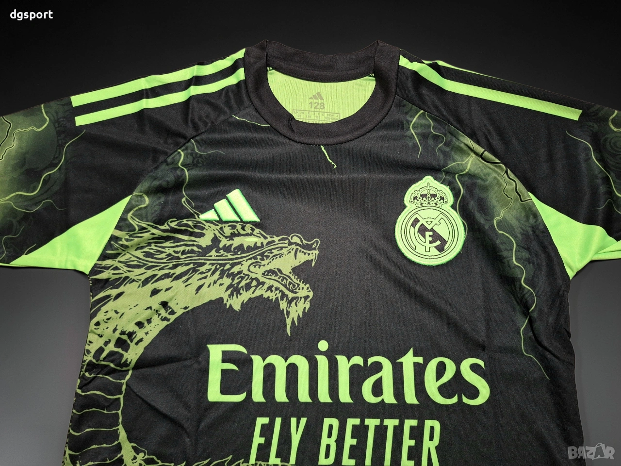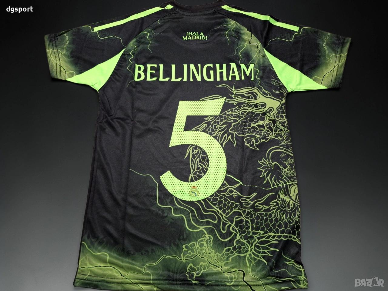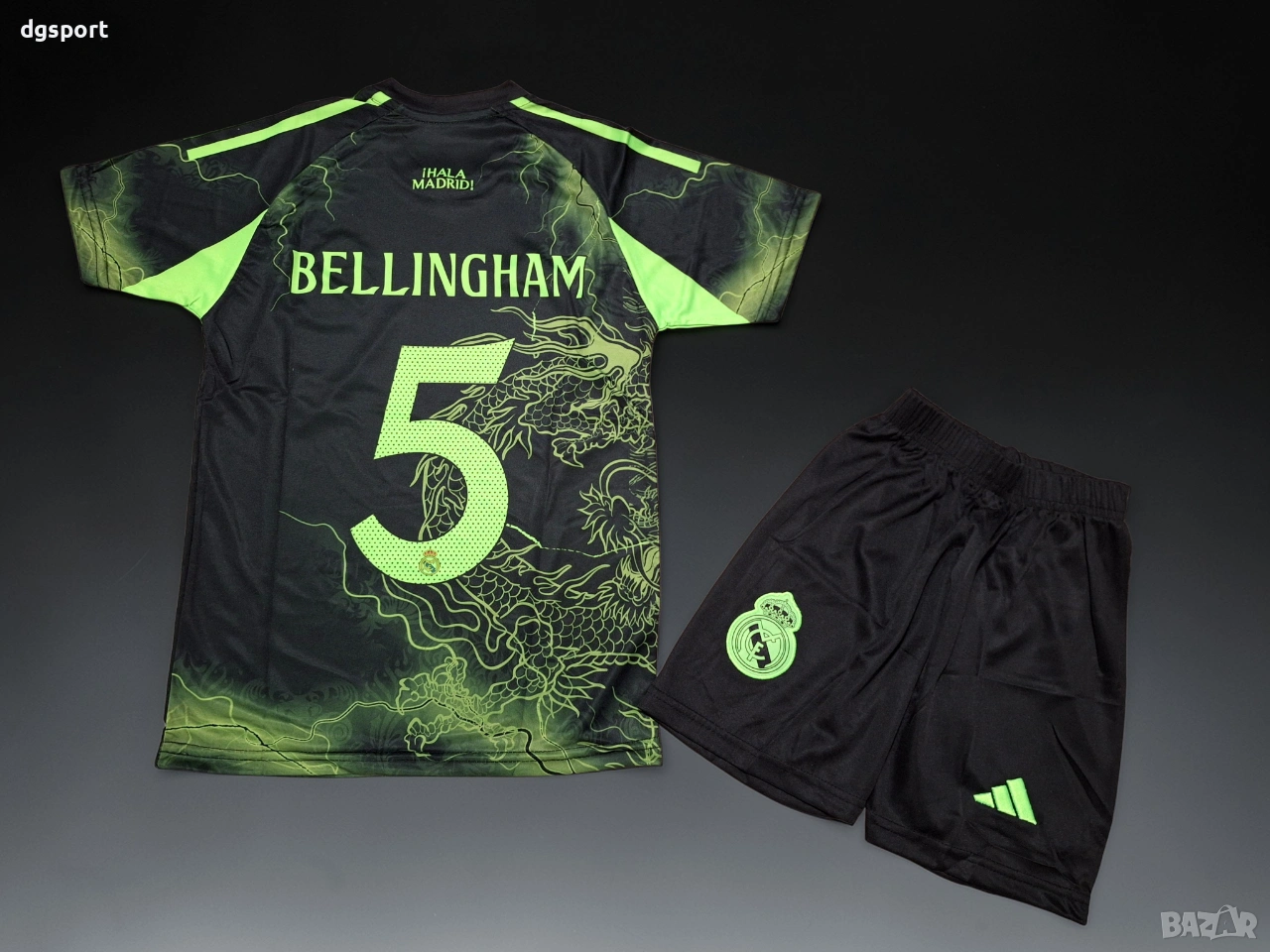 Детски флуоресцентен футболен екип на РЕАЛ М#ДЖУД БЕЛИНГАМ#5!Специално издание Дракон!Екипът е флуоресцентен под ултра виолетова светлина. Бродирани емблеми на клуба и марката.Име на футболист и номер принтирани директно върху плата.Налични размери 128,140,152,164 и 176.Доставка със Еконт или Спиди, опция преглед и тест.