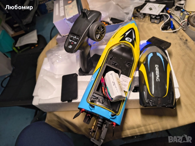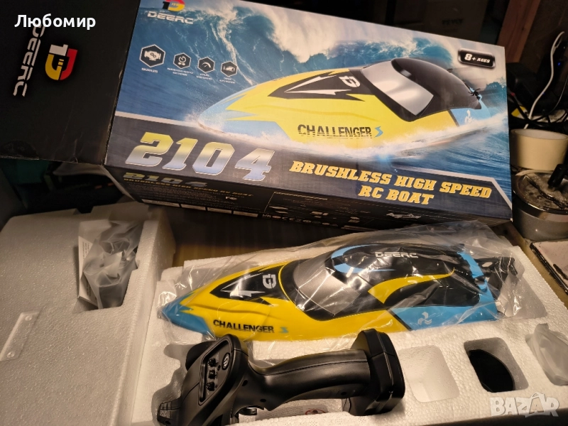 Безчеткова RC лодка, бърза лодка с дистанционно управление, скорост над 30 мили в час с аларма за ниска батерия, 2.4GHz.DEERC 2104 Безчеткова RC лодка, бърза лодка с дистанционно управление за басейни и езера, развиваща скорост над 32 км/ч, 2.4 GHz с LED, акумулаторна батерия, аларма за ниска батерия и помощ при преобръщане за деца и възрастни.Подобрена безчеткова RC лодка: Високоскоростната лодка с дистанционно управление, развиваща скорост над 48 км/ч, е оборудвана със супер мощен безчетков мотор 2212, който може да работи плавно с висока скорост по водната повърхност.
