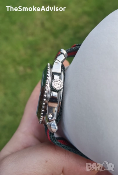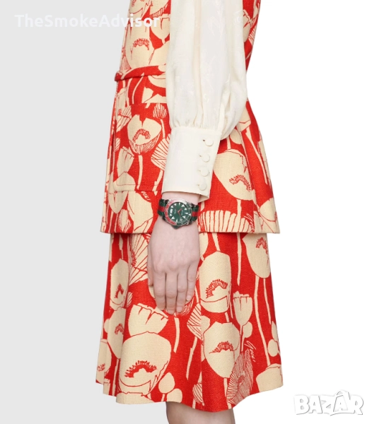 Създаден по образец на професионалните дайвърски часовници, този унисекс модел съчетава отличимата естетика на Gucci с ежедневна надеждност. Зеленият циферблат с многоиконни индекси и зелено-червеният безел дават силно присъствие на ръката, а рециклираният полиестерен Web каишка осигурява комфорт и устойчивост. Швейцарският кварцов механизъм осигурява безупречна точност, а луминесцентните индекси позволяват лесно отчитане дори при слаба светлина.
