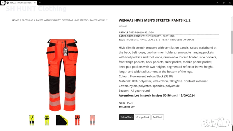 Марка: WENAAS HIVIS STRETCH PANTS KL 2 Work - еластичен работен панталон. Има джоб на коляното за наколенка, гъба.