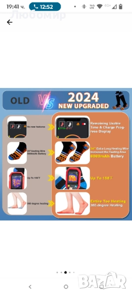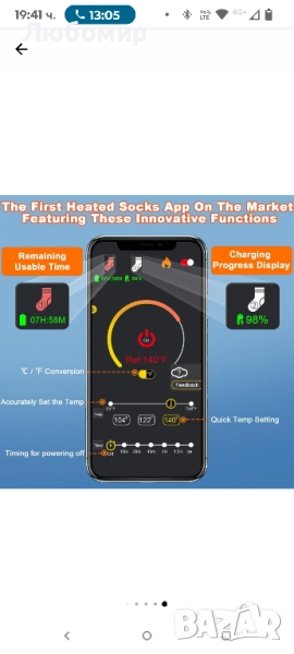 Отоплителните чорапи са оборудвани с 6000mAh литиево-йонна акумулаторна батерия, която може да издържи 5-9 часа.