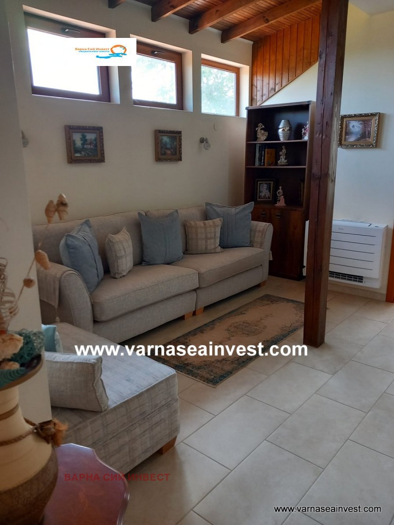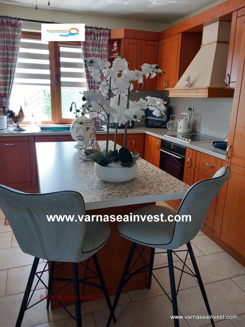 Модерният климатик осигурява комфорт през всеки сезон, а прилежащата кухня - с масивните си дървени шкафове и качествени уреди - прави ежедневното готвене удоволствие.
