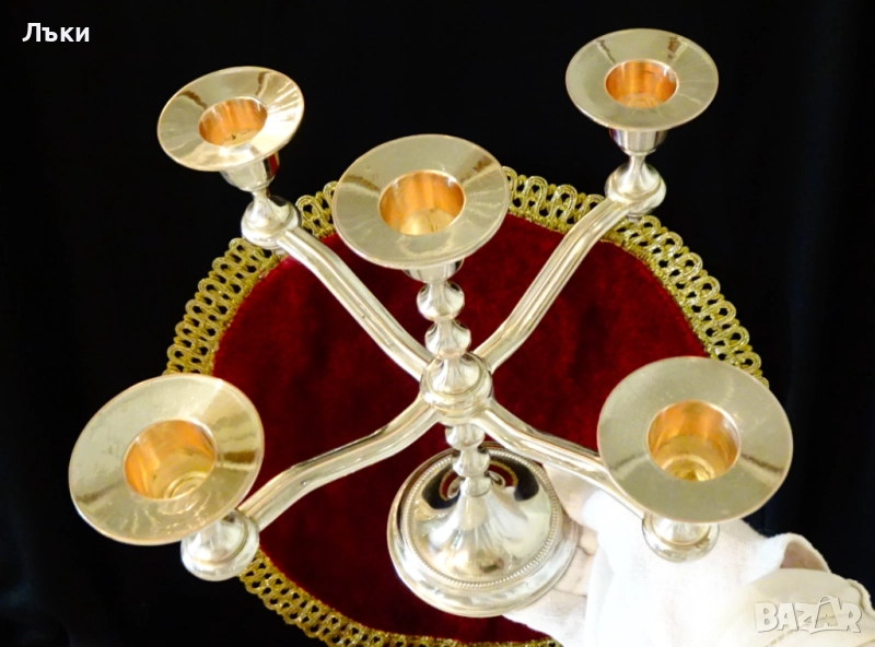 свещник,майсторска ръчна изработка от чиста червена мед,дебело посребрен с
