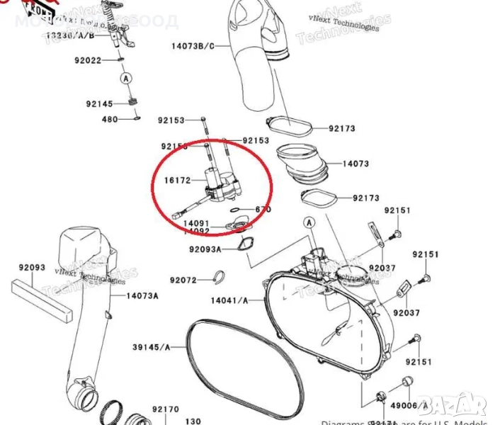 Актуатор за капак ремък 2005-23 Kawasaki Brute Force 650 750 KVF750 → Обява 52067974