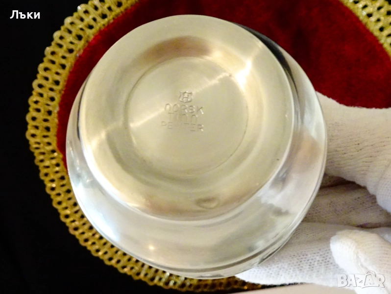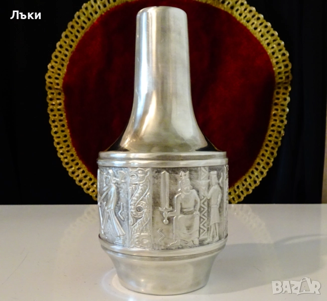 изработка от 95% калай и 5% сребро,маркирана от производителя.Декорирана с