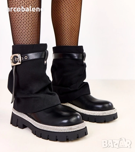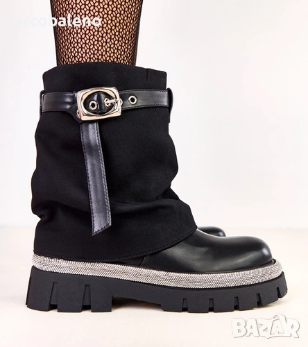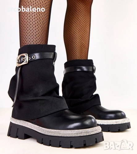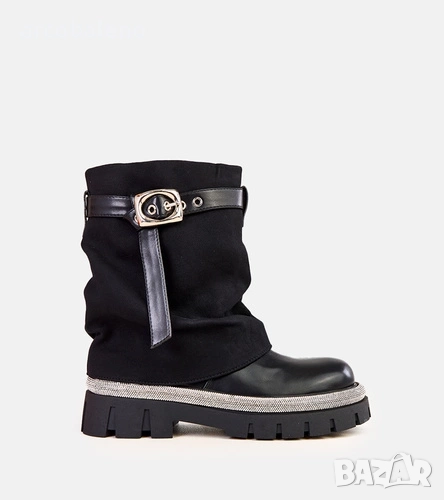 Дамски черни боти до глезена с навита горна част и кристали по краищата от Yemi