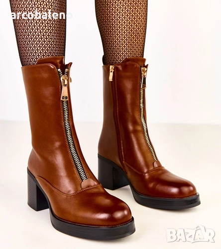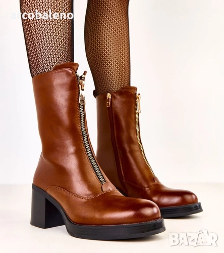 Дамски боти на блоков ток с декоративен цип отпред Erafir, 2цвята