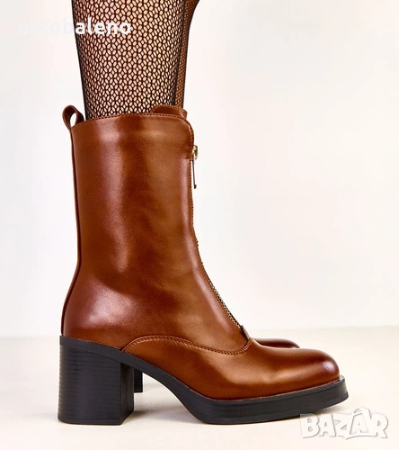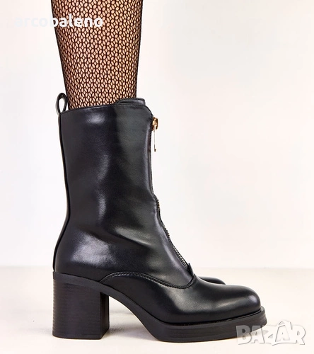 Дамски боти на блоков ток с декоративен цип отпред Erafir