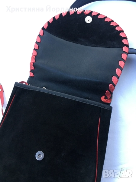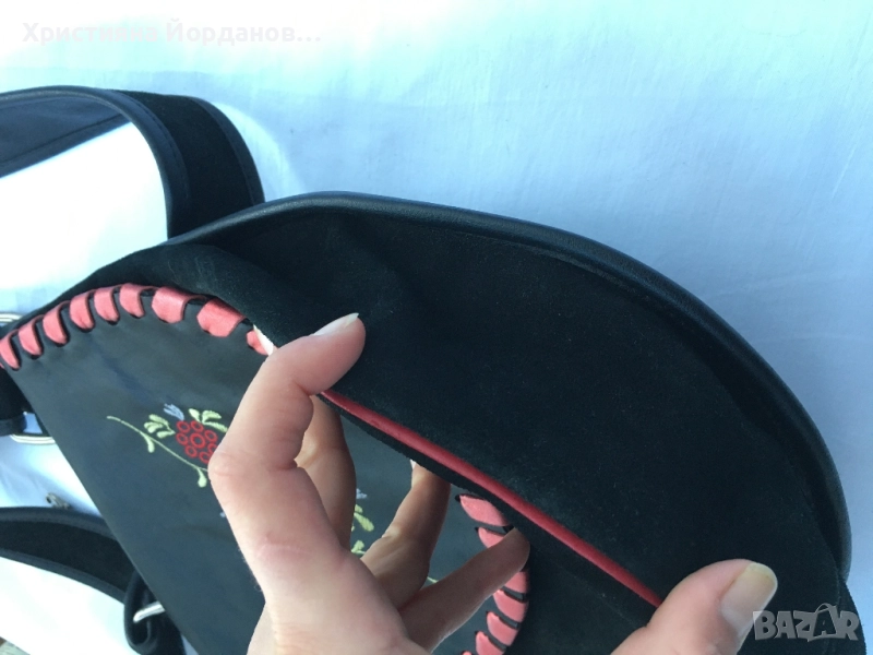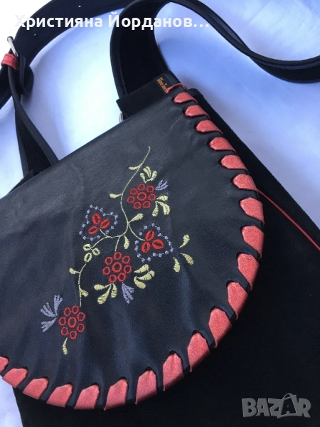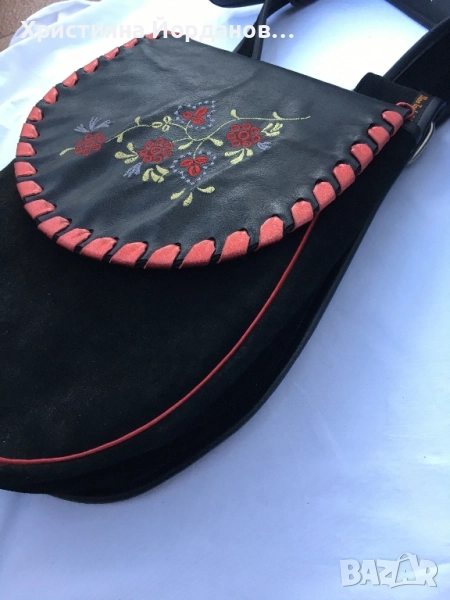 Здравейте, разделям се с тази чанта ( за да си направя място за още 🤫) Естествена кожа е, от полският бранд Slon Torbalski. Набук и Мека кожа, лицева част с бродирани флорални елементи. Отвътре е без прегради има малък джоб с цип, карабинка за ключове, Място за 3 писалки и малък телефон. Дръжката се регулира. Доста издръжлива. Носена е и има следи леки следи от употреба, които си личат най-вече по набука.