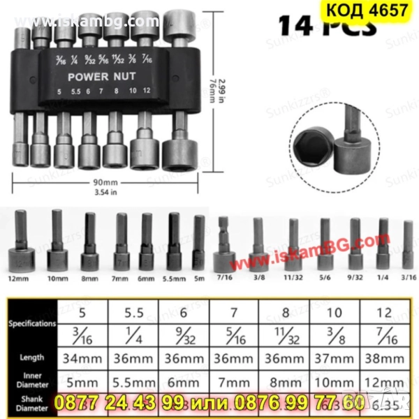 Вложки за винтоверт комплект 14бр - КОД 4657