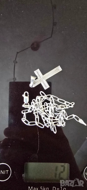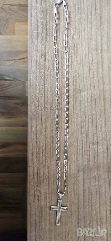 Сребърен ланец със сребърна висулка кръст → Обява 52070691