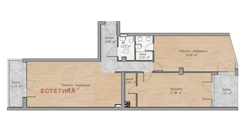 Предлагам офиси на партер и надпартер с площ 72м2 -офис 7, 126м2- офис 4,132м2- офис 3, 150м2-офис 1 и 153 м2-офис 8.