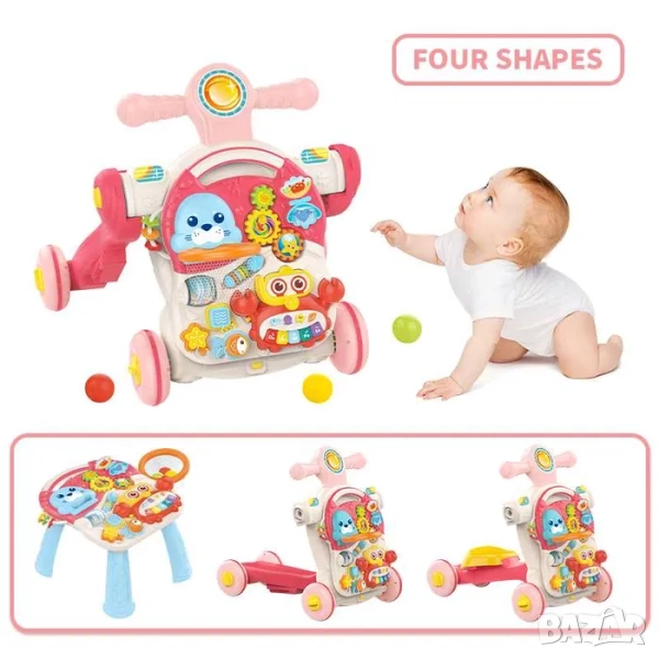 Мултифункционална проходилка уокър, масичка, тротинетка 4 в 1