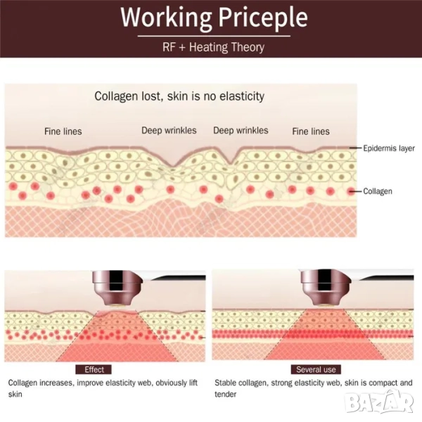 Портативен RF термаж радиочестотен лифтинг, Бръчки, увиснала кожа