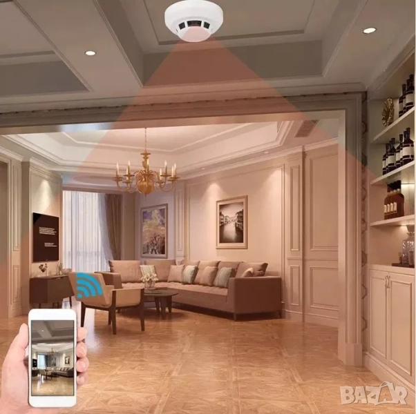 4К Wi-Fi камера в димен детектор : С тази камера ще имате възможност да наблюдавате избрано от Вас помещение на компютъра или мобилния си телефон с помощта на Wi-Fi мрежа. С двупосочно говорене