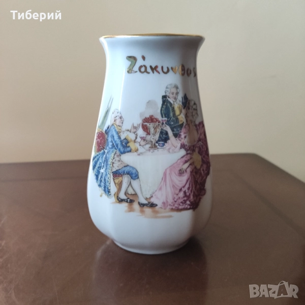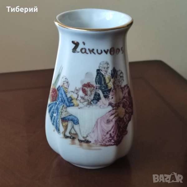 Порцеланова винтидж ваза, ръчна изработка украсена с 24 карата злато, височина 15,5 см , отвор 7 см. Без забележки, маркирана за произход - Гърция. Изпращам по Еконт с 10% отстъпка от транспортната такса.