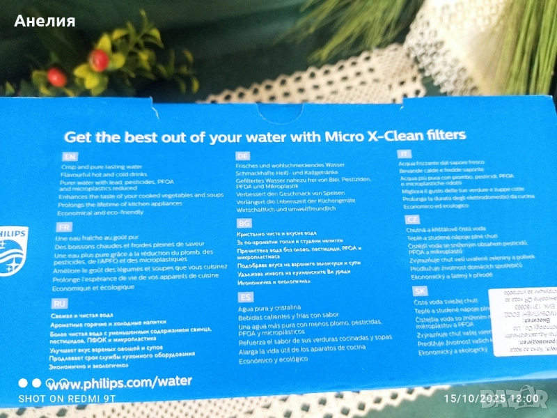 Технология: Филтрационната технология на Philips премахва до 99,999% от вирусите и бактериите, както и тежки метали като олово.