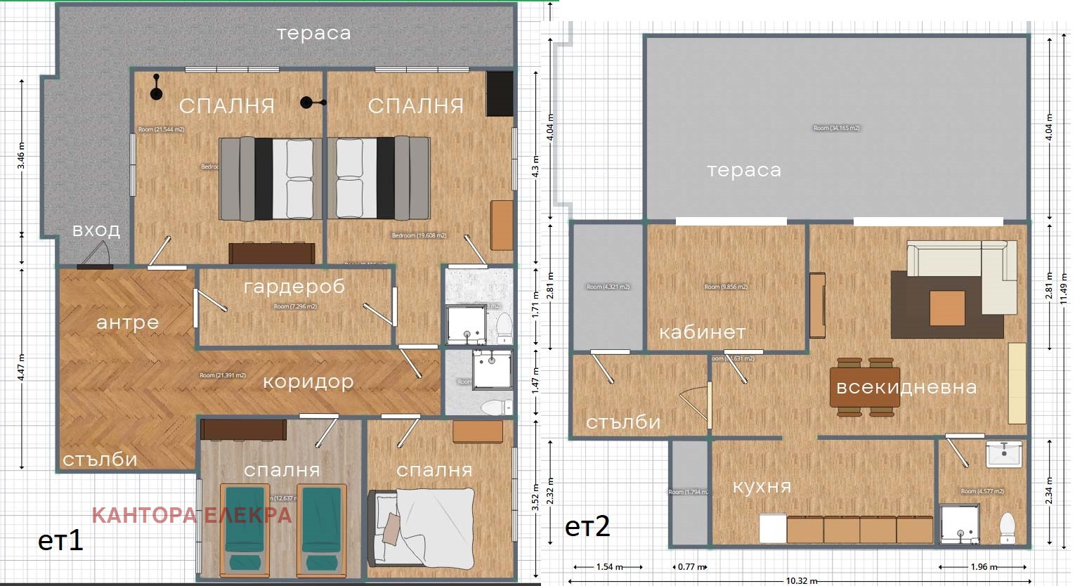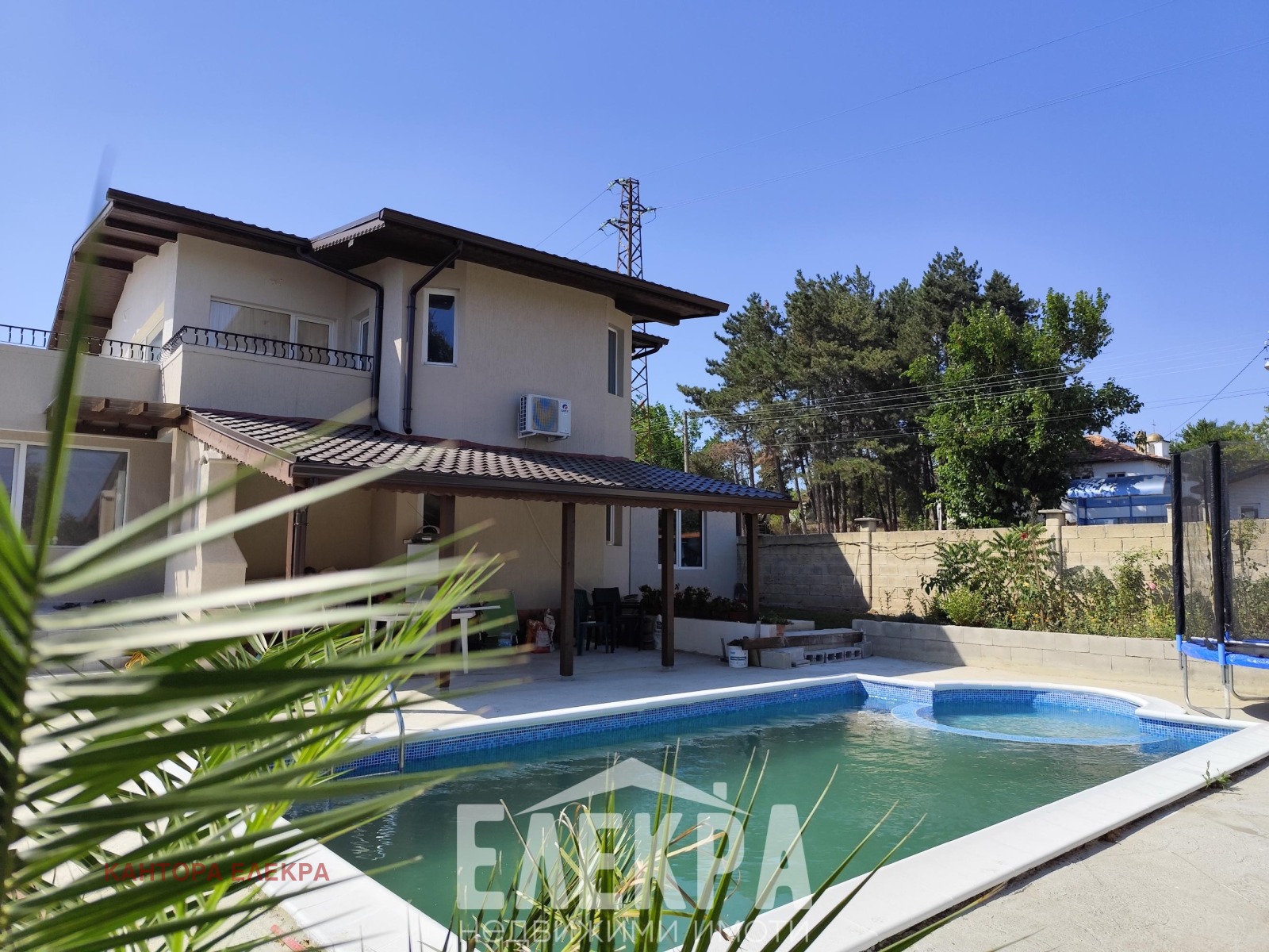 - **Обща площ**: 254 кв.м. застроена площ + 30 кв.м - гараж и 30 кв.м барбекю зона около басейна.