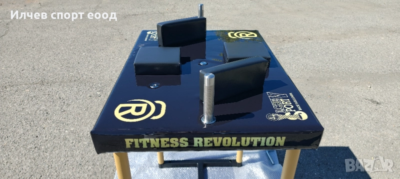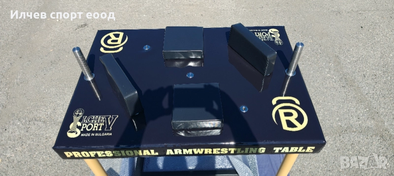 Масата е изработена с висококачествени материали съобразени с изискванията на световната армрестлинг федерация.Основата и краката са масивен дебелостенен профил прахово боядисани. Плот 3Д печатан венил с високо качество.Подлакътници и ограничители промазан венил. Възможност за допълнително поставяне на предпазни гумени тампони на краката в цвят по избор. Дръжки от неръждаема стомана.Масата е професионална , много здрава издържаща голямо съпротивление за дълъг период от време, разглобява се и се транспортира лесно.